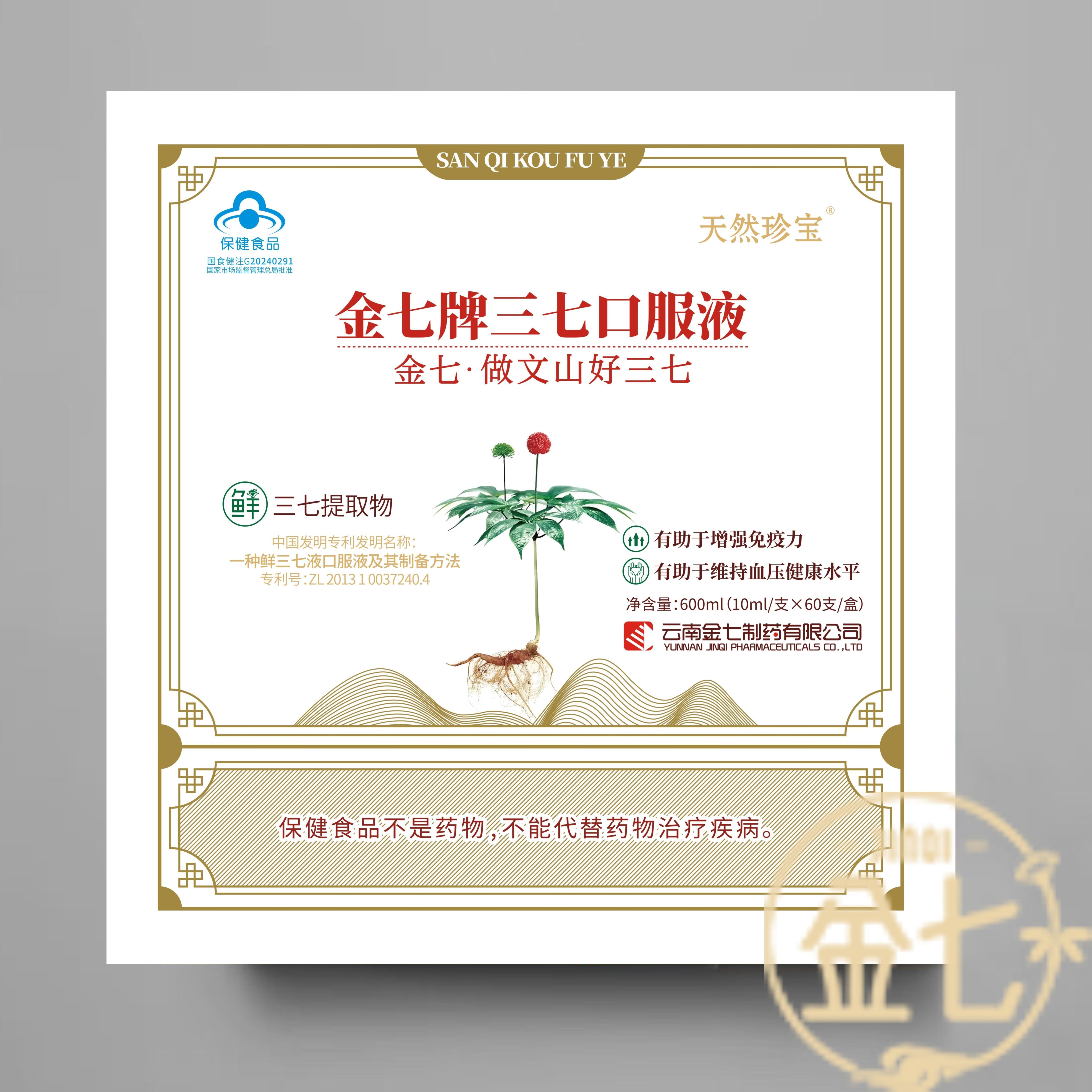【原料】鮮三七提取物【輔料】純化水【性狀】澄明液體,允許有少量沉淀【標志性成分及含量】每100ml含...